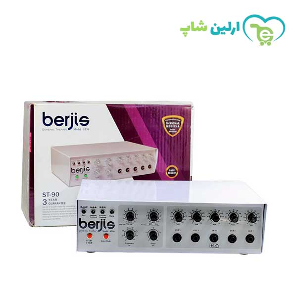 دستگاه فیزیوتراپی برجیس 5 کاناله ST90 یک دستگاه فیزیوتراپی با طراحی منحصر به فرد محصول ایران می باشد. تنس به معنی تحریک الکتریکی عصب عضله از طریق پوست است. از نظر پزشکی ثابت شده که تنس روش موثر و غیر دارویی برای کاهش دردهای مختلف است و هیچگونه عوارض جانبی برای بدن ندارد. دستگاه تنس فیزیوتراپی 5 کانال برجیس ST-90 جریان برق را به منطقه آسیب دیده انتقال می دهد و سبب تسکین درد های مزمن مانند کمر درد، دردهای ناشی از عمل جراحی و صدمه و آرامش فرد می گردد. یکی از ویژگی های این دستگاه داشتن دکمه ی تایمر و دکمه ی استراحت (Rest Time) می باشد که مصرف کننده می تواند مدت زمان استراحت را از 1 تا 10 ثانیه تنظیم کنید. همچنین دستگاه دارای 5 خروجی می باشد که می توان همزمان برای چند قسمت بدن را استفاده کرد.